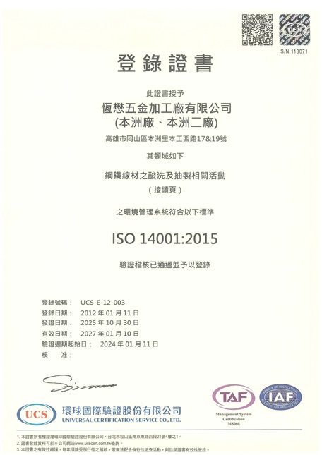 ISO 14001 2015 環境驗證